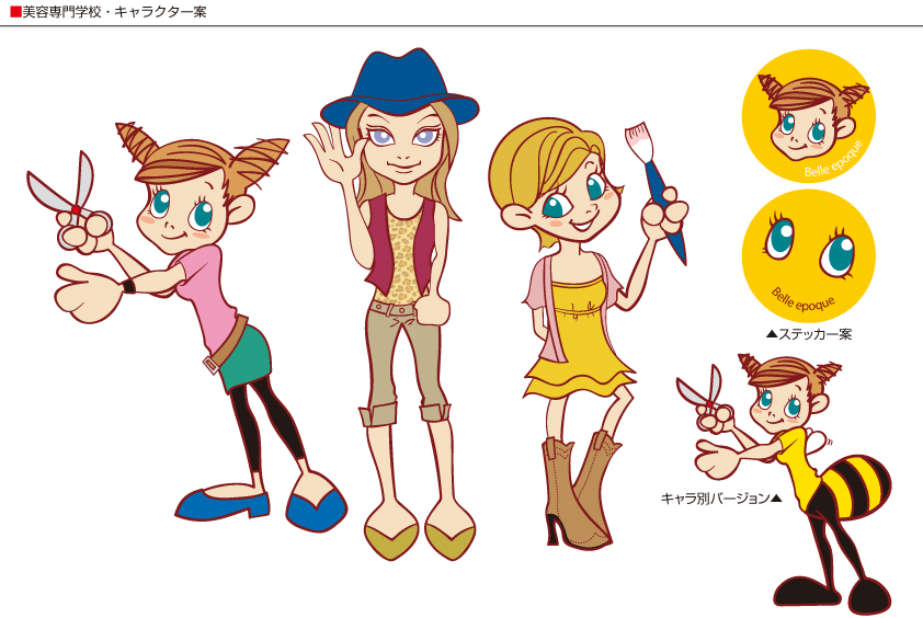 美容専門学校のキャラクターとして、3キャラを提案しました。